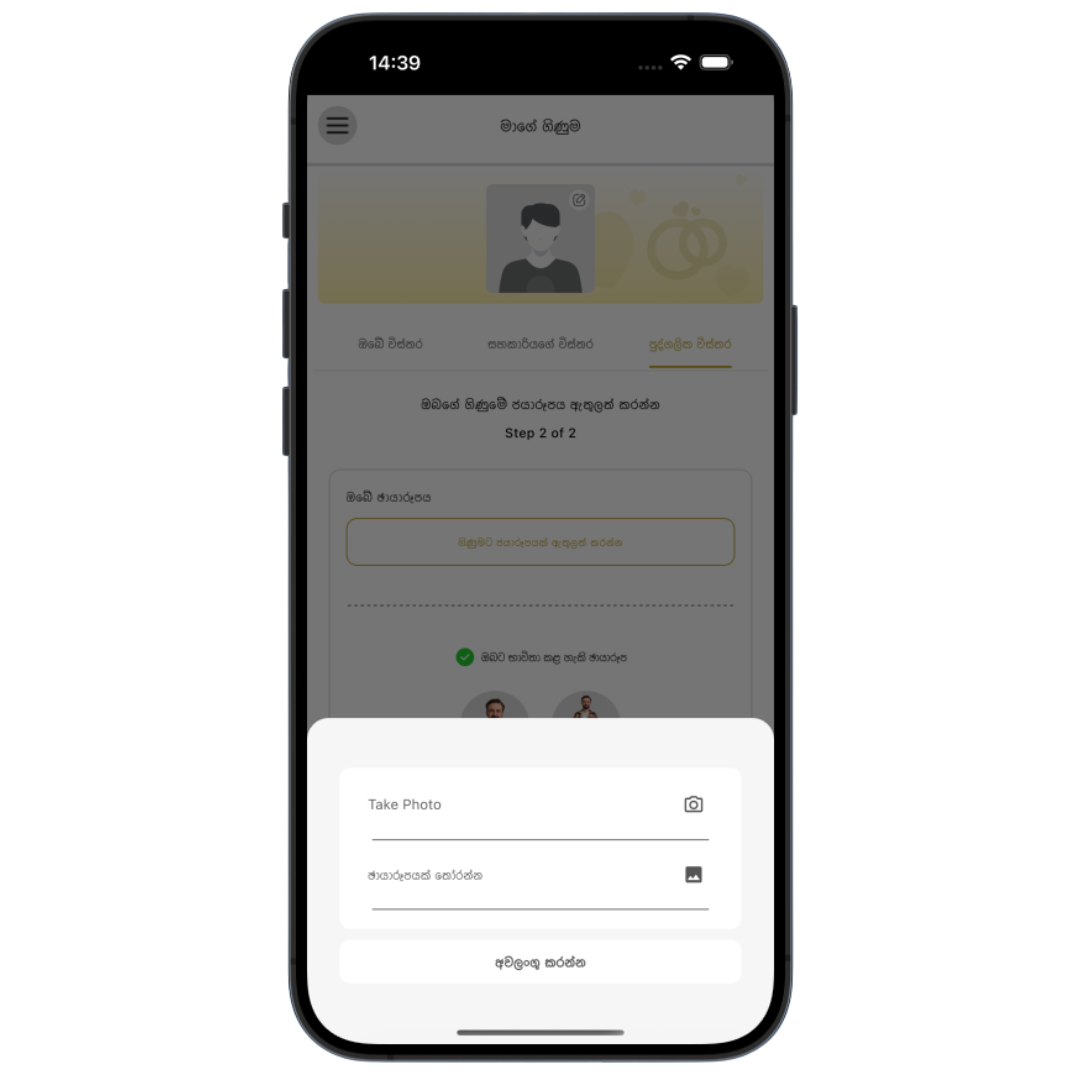 • ඔබගේ ඡායාරුපයක් තෝරා ගෙන එම ඡායාරූපය ඇතුළත් කරන්න.