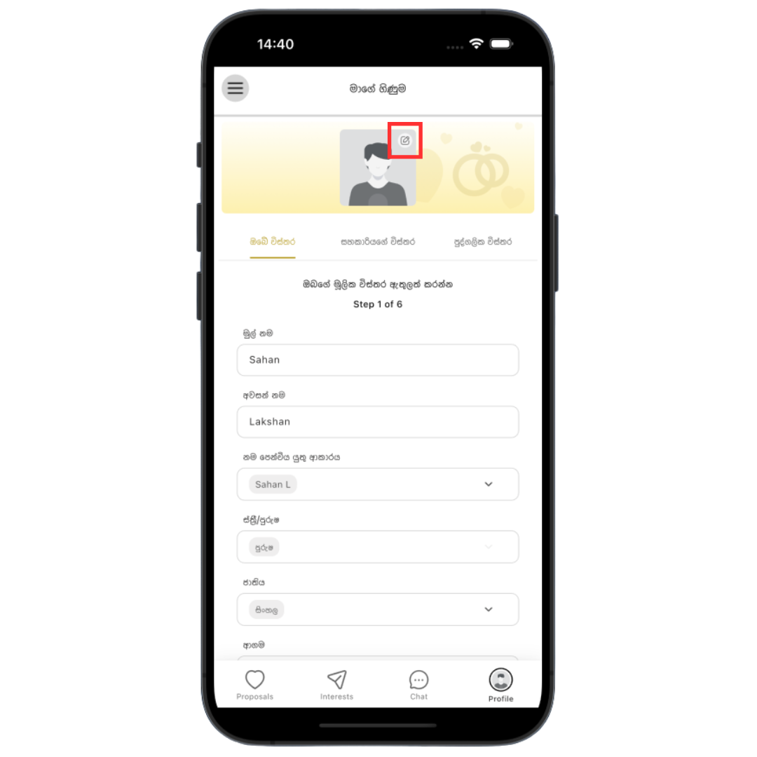 • මාගේ ගිණුම පිටුවෙහි ඇති “Edit” icon එක click කිරීම මගින් ඔබට ඔබගේ ඡායාරූපයක් මින්දද ගිණුමට එකතු කර ගත හැක.