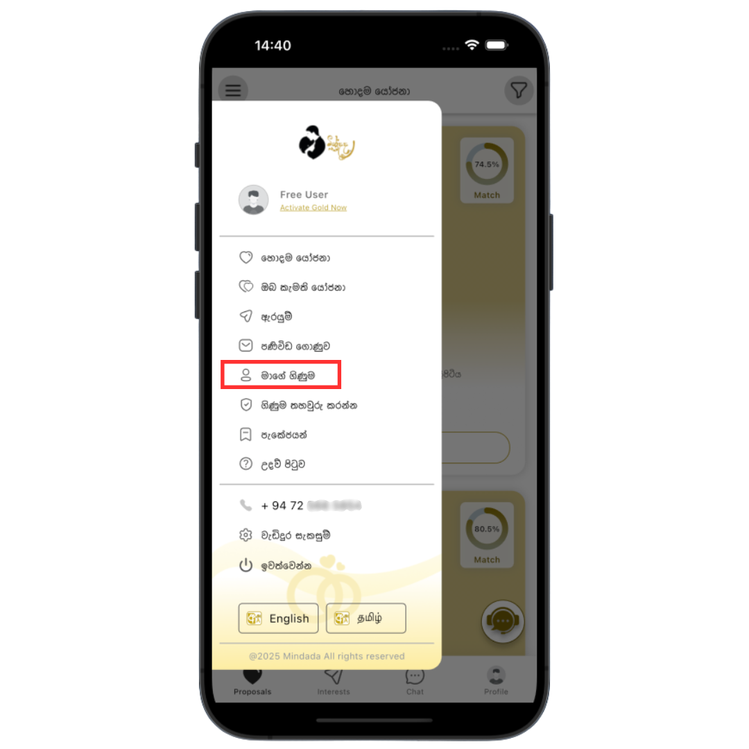 • මින්දද ගිණුමට ඇතුළු වූවායින් පසු “මාගේ ගිණුම ” click කර ඔබගේ ගිණුමට යන්න.