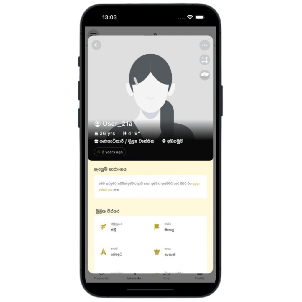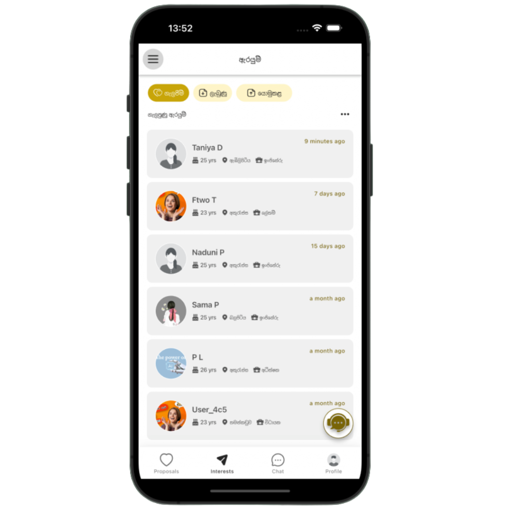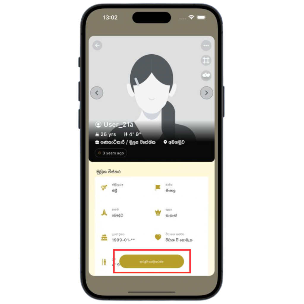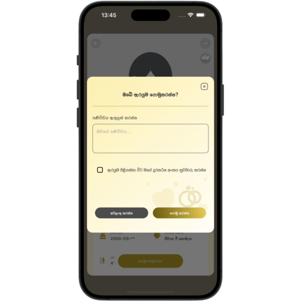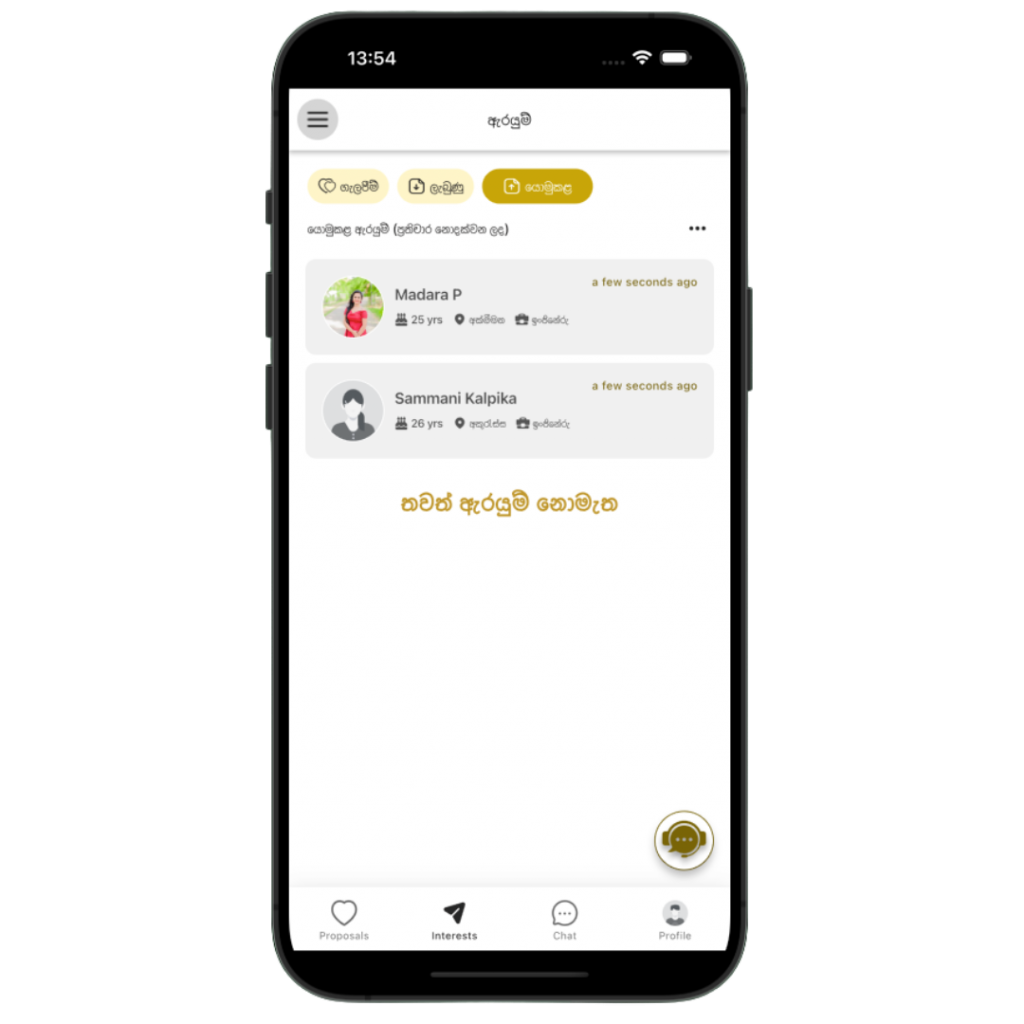 • ඔබ යොමු කල ඇරයුම් අදාළ පාර්ශවය මගින් පිළිගෙන ඇත්නම් එය ඔබගේ “ගැලපීම්” ගොනුවට ඇතුලත් වේ.